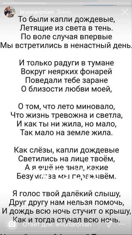 Հայկական շախմատի առաջատար Լեւոն Արոնյանը Ինստագրամում հրապարակել է բանաստեղծություն, որը նվիրված է կյանքից հեռացած կնոջ՝ Արիանա Կաոիլիի հիշատակին։