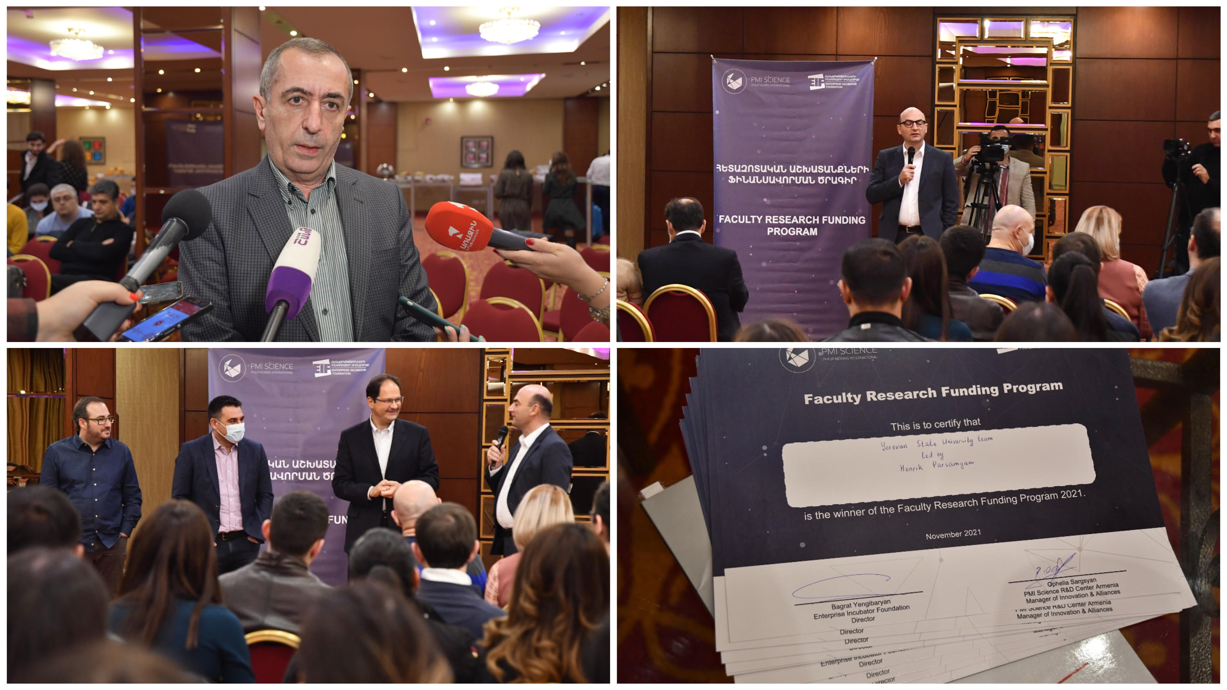 «Նախաձեռնությունն ունի արդեն տարիների պատմություն, արդեն 4 տարի է, ինչ ակտիվ համագործակցում ենք PMI Science-ի հետ՝ աջակցելով Հայաստանի գիտական համայնքին: Սա յուրօրինակ մի նախաձեռնություն է, որի միջոցով փորձում ենք աջակցել գիտահետազոտական ինստիտուտներին և համալսարաններին, որոնք զվաղվում ենք գիտությամբ: Սա կոչվում է ֆակուլտետային դրամաշնորհ, ինչը նշանակում է, որ թիմը չի կարող ուղիղ դիմել, պետք է դիմի իր համալսարանի կամ գիտահետազոտական իսնտիտուտի միջոցով: Սրանով կարողանում ենք միջավայր ստեղծել, որպեսզի գիտնականները ստանան ոչ միայն ֆինանսավորում, այլև աջակցեն այն միջավայրին, որում աշխատում են»,-այս մասին ասաց «Ձեռնարկությունների ինկուբատոր» հիմնադրամի տնօրեն Բագրատ Ենգիբարյանը: